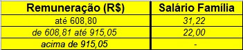 Foi publicada a Portaria Interministerial nº 02, de 06 de janeiro de 2012, que estabelece as faixas do benefício do salário família a partir de 1° de Janeiro de 2012.