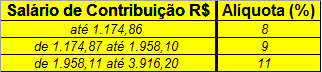 Contribuição descontada do Segurado sobre salário de contribuição: