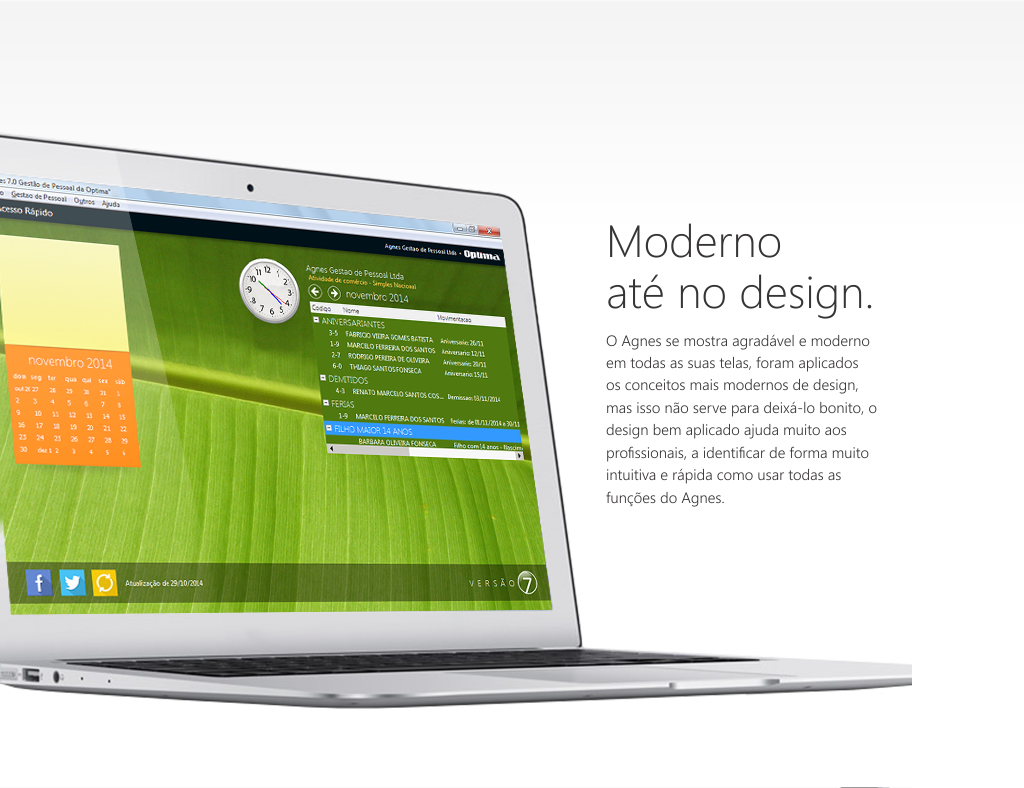 A nova versão do Agnes vem agilizar e simplificar ainda mais o processo da folha de pagamento. Agnes foi desenvolvido para você que desejava um sistema de folha de pagamento eficiente porém fácil de usar e configurar. Suas fórmulas e opcões para os eventos permitem moldá-lo a seu modo de trabalho de uma forma tão simples que vai lhe surpreender.