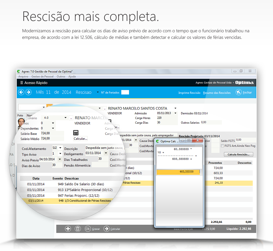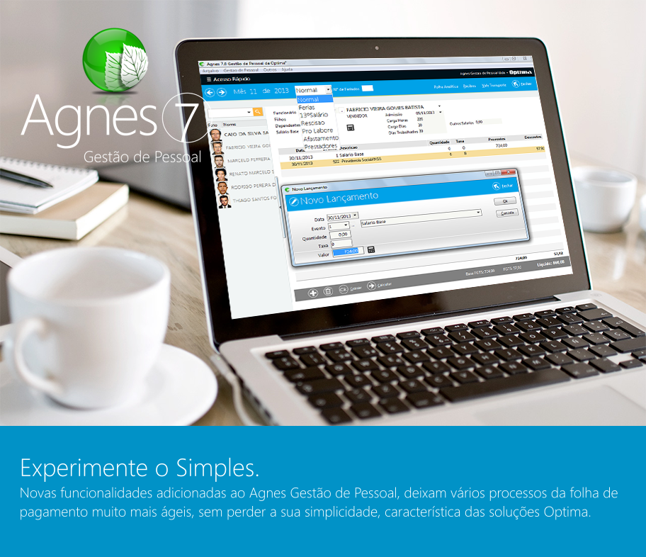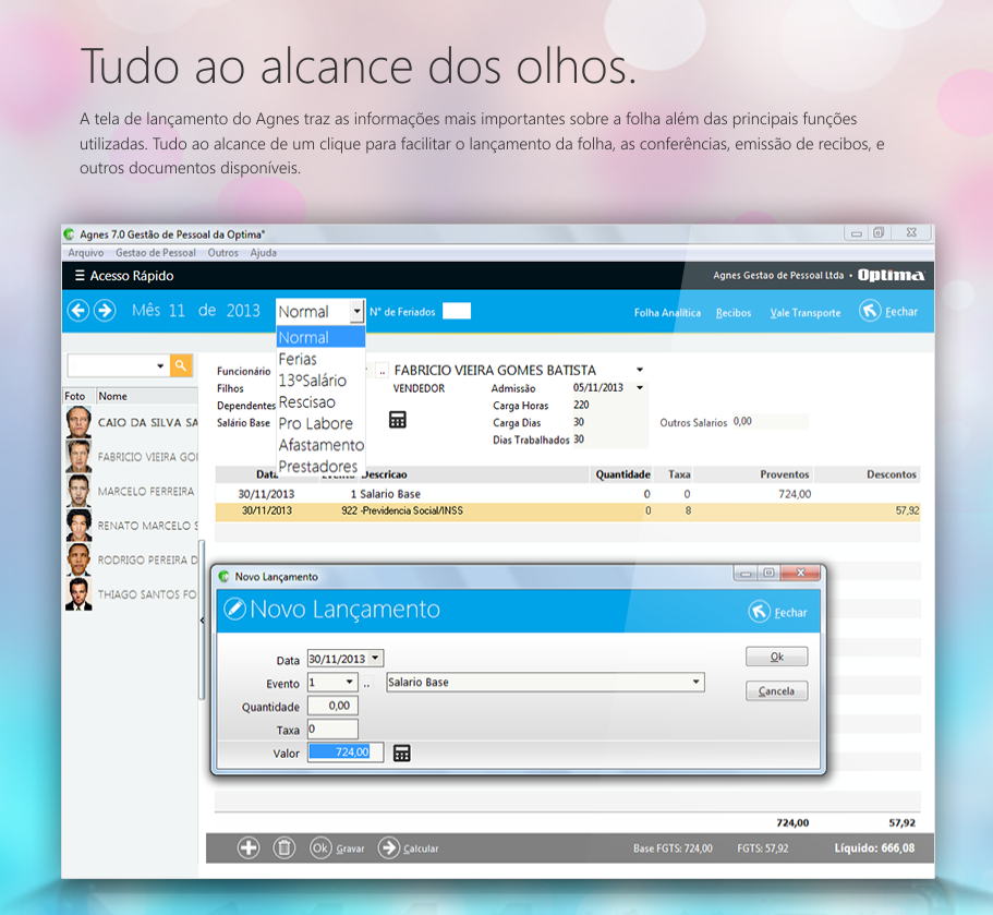 O Agnes Módulo de Folha de Pagamento da Optima é um sistema onde o principal foco é a facilidade de uso com rapidez, para controle do departamento pessoal, cálculos e impressão de guias.
